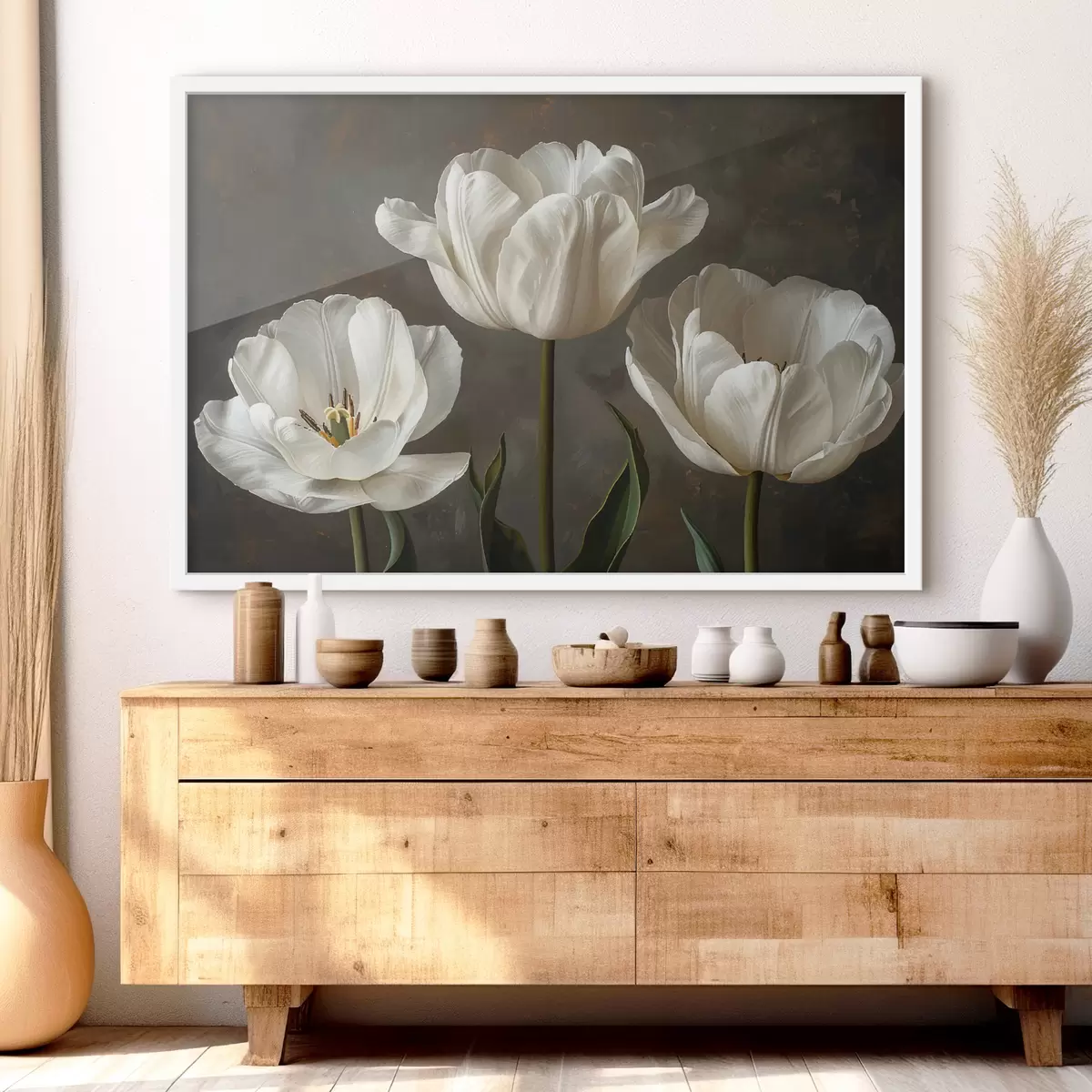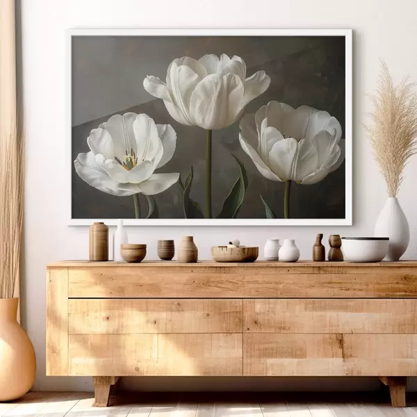 Poster Grandes flores de tulipán, tulipanes blancos Nr f40792
