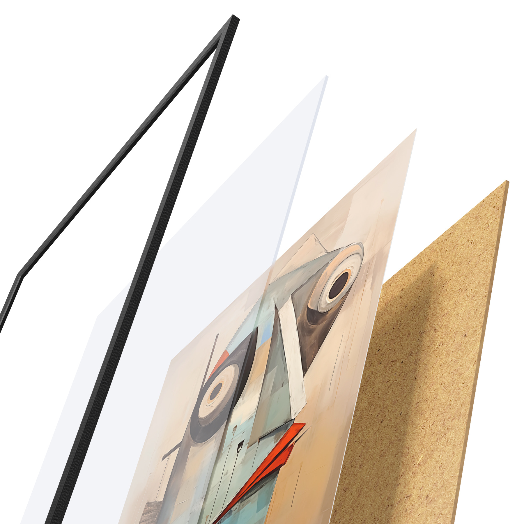 El póster consta de marco, plexiglás, imagen impresa y soporte de aglomerado. El póster puede colgarse inmediatamente en la pared gracias a los soportes de la parte posterior.
