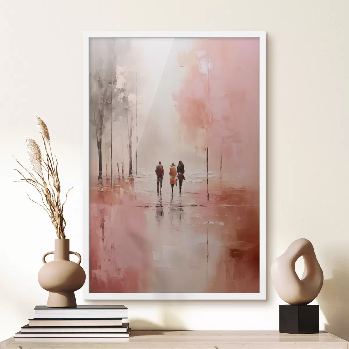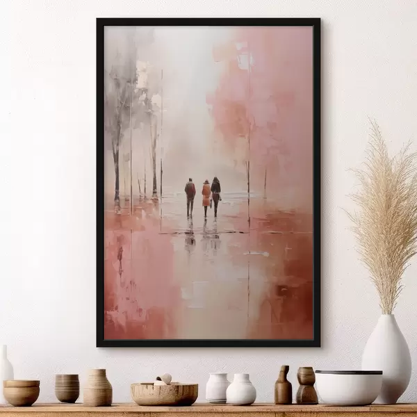 Poster La gente caminando en el parque abstracto, de color rojo rosa Nr f40802