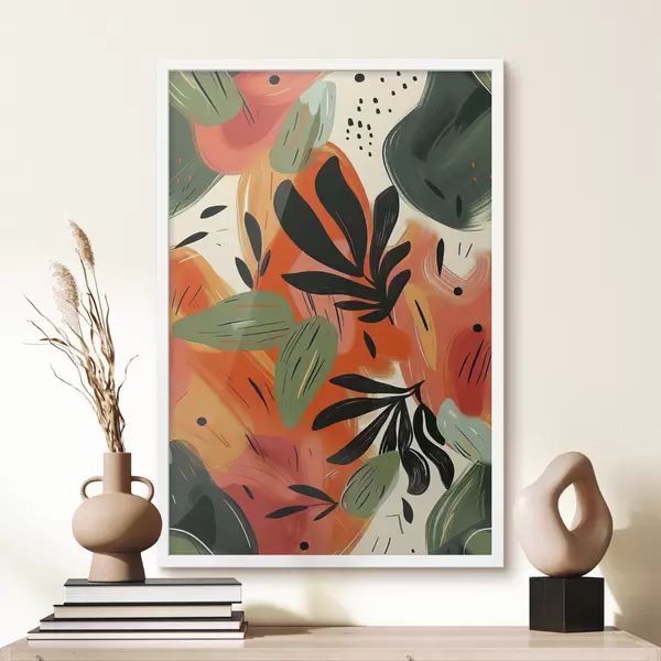 Poster Estampado abstracto con flores y hojas Nr f40812