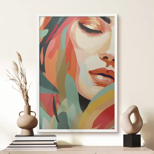 Poster Hermoso rostro de mujer, abstracción geométrica, floral, dibujo acrílico Nr f40815