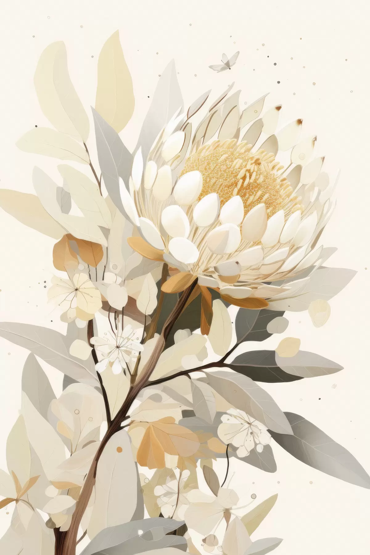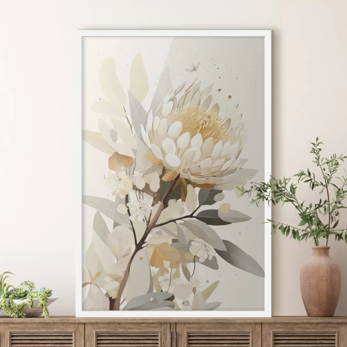 Poster Flor de protea en suave paleta de color beige, abstracción floral Nr f40819