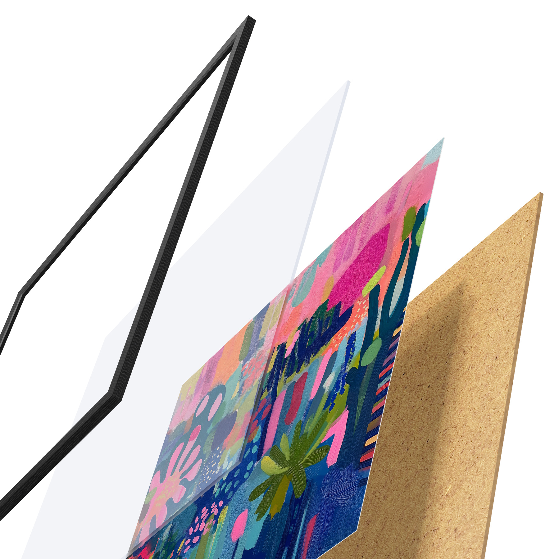 El póster consta de marco, plexiglás, imagen impresa y soporte de aglomerado. El póster puede colgarse inmediatamente en la pared gracias a los soportes de la parte posterior.