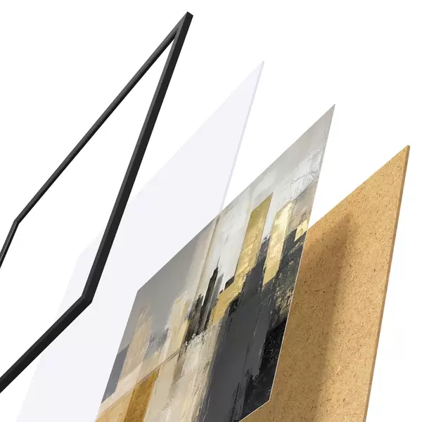 El póster consta de marco, plexiglás, imagen impresa y soporte de aglomerado. El póster puede colgarse inmediatamente en la pared gracias a los soportes de la parte posterior.