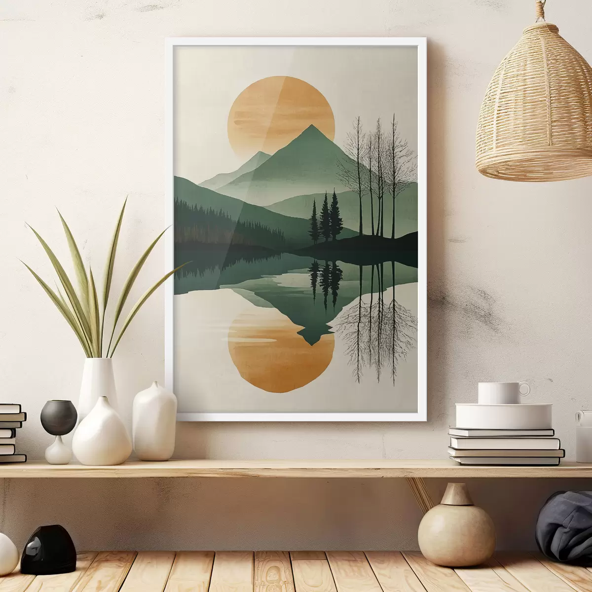 El póster consta de marco, plexiglás, imagen impresa y soporte de aglomerado. El póster puede colgarse inmediatamente en la pared gracias a los soportes de la parte posterior.
