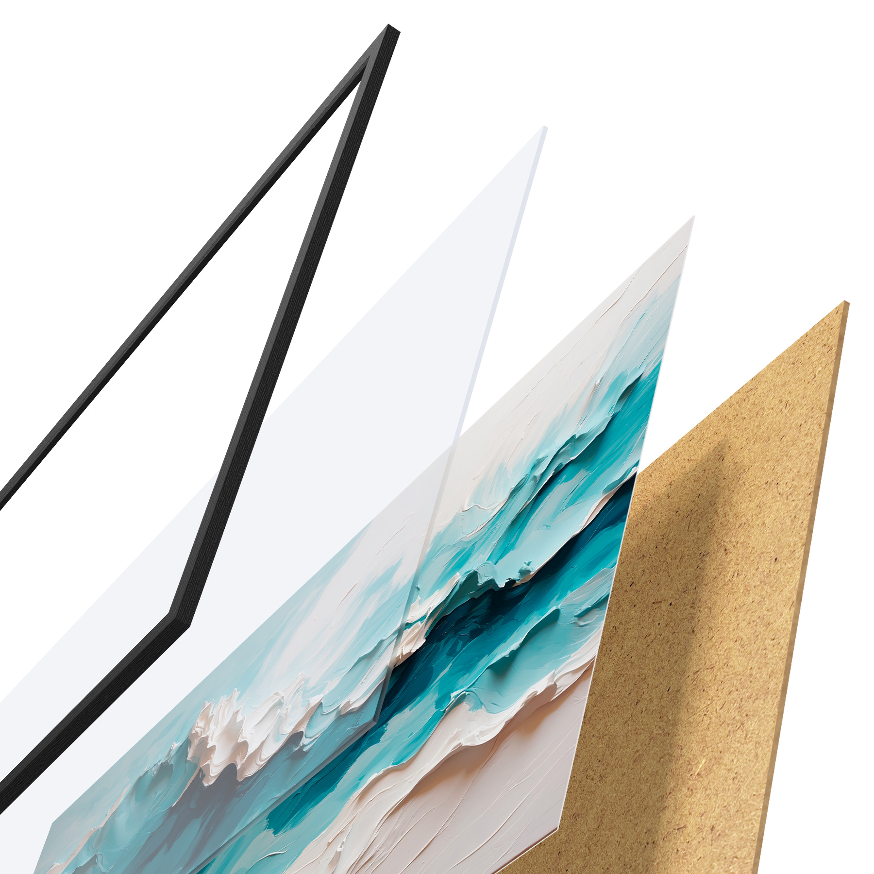 El póster consta de marco, plexiglás, imagen impresa y soporte de aglomerado. El póster puede colgarse inmediatamente en la pared gracias a los soportes de la parte posterior.