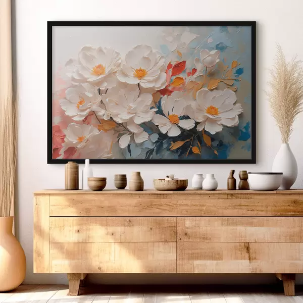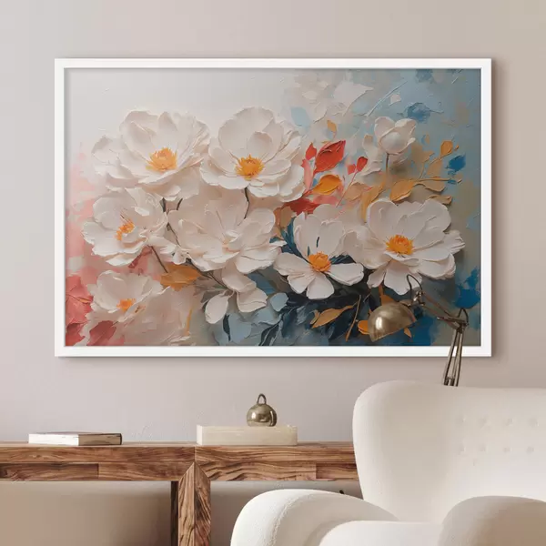 Poster Flores blancas abstractas al óleo f40862