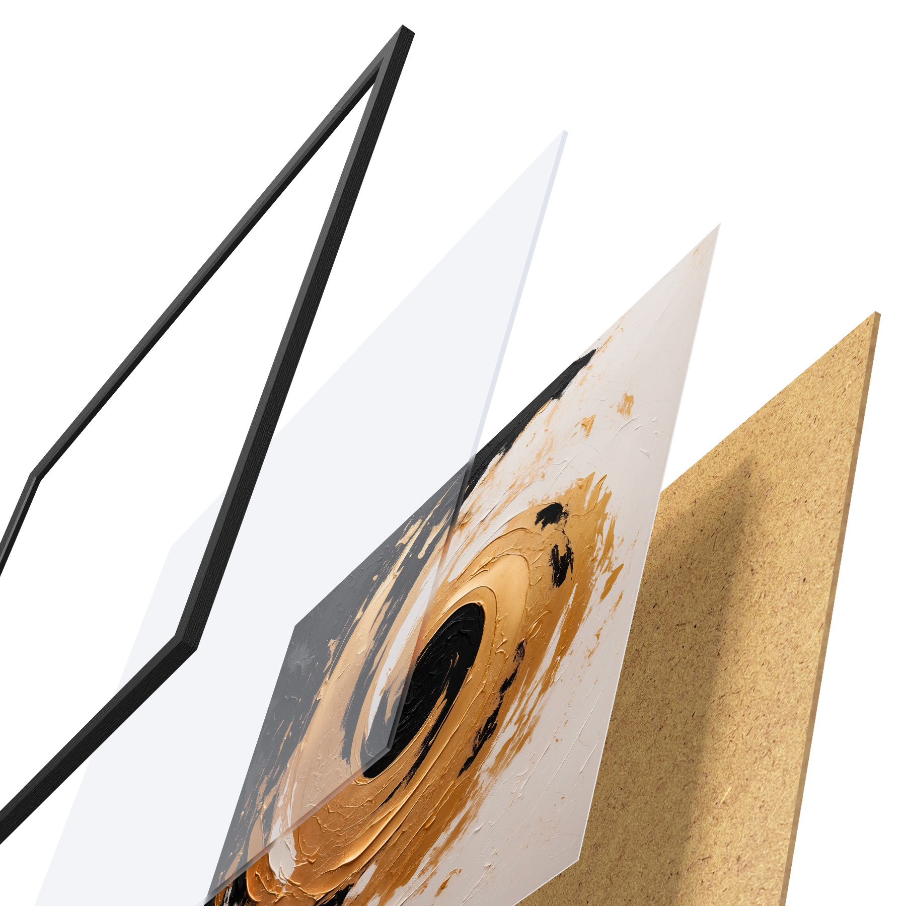 El póster consta de marco, plexiglás, imagen impresa y soporte de aglomerado. El póster puede colgarse inmediatamente en la pared gracias a los soportes de la parte posterior.