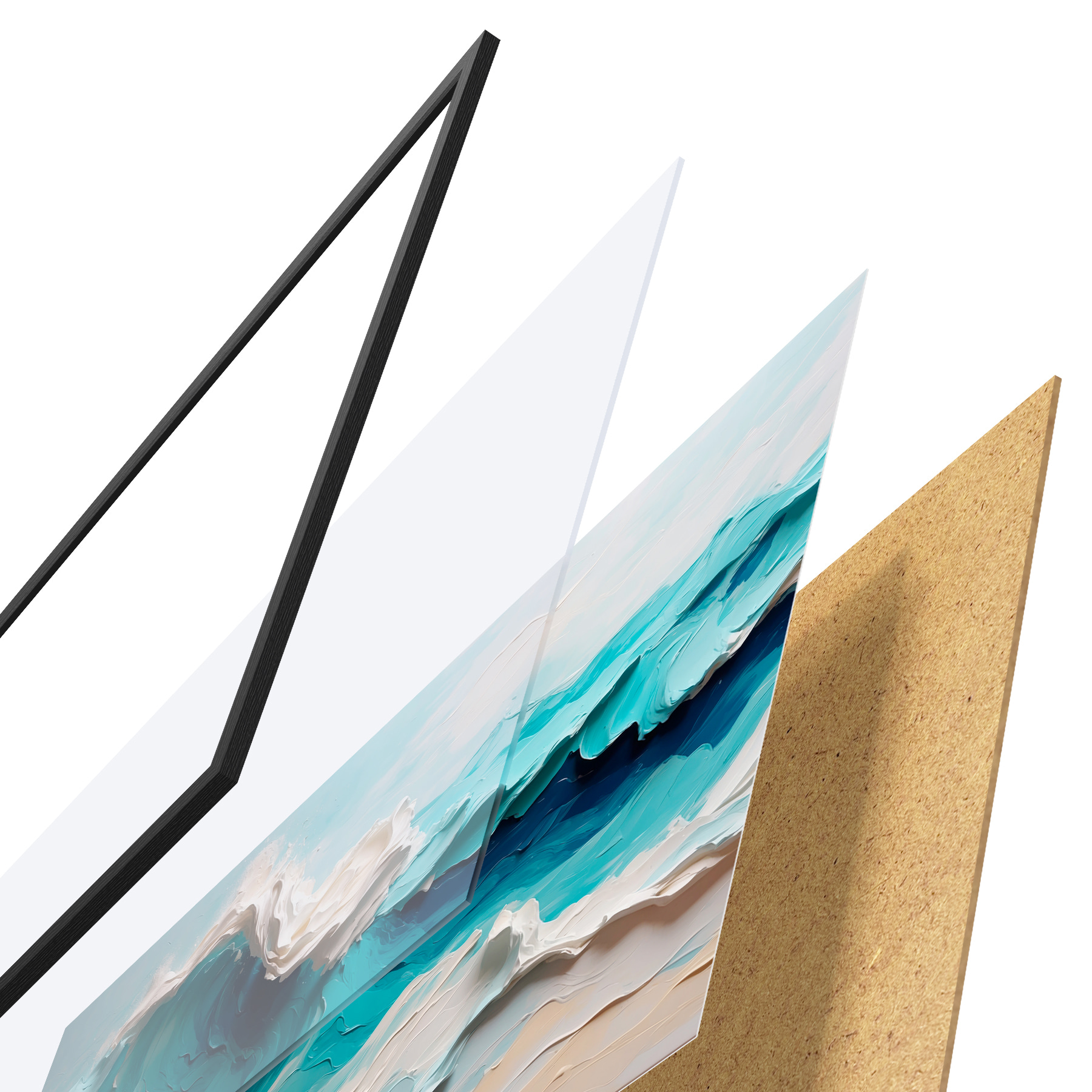 El póster consta de marco, plexiglás, imagen impresa y soporte de aglomerado. El póster puede colgarse inmediatamente en la pared gracias a los soportes de la parte posterior.