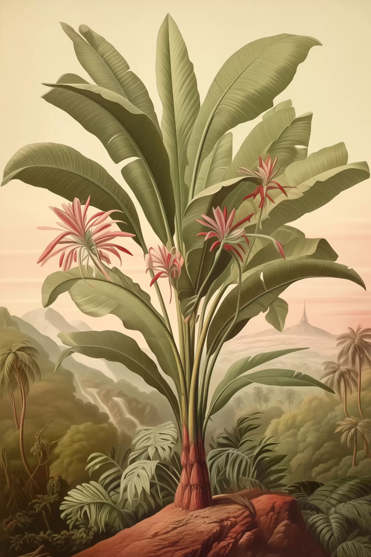 Poster Palmera bananera vintage, color verde Nr f40878