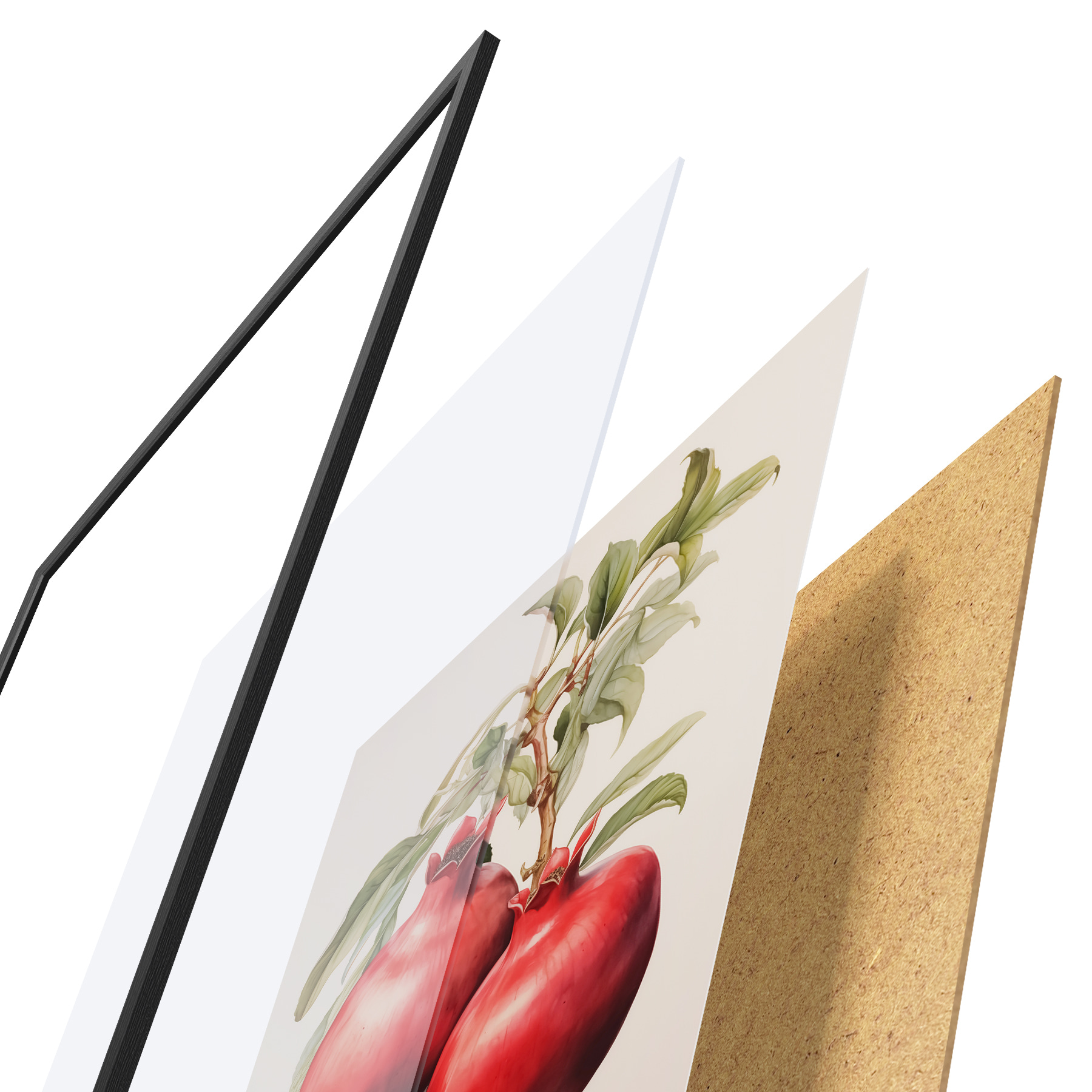El póster consta de marco, plexiglás, imagen impresa y soporte de aglomerado. El póster puede colgarse inmediatamente en la pared gracias a los soportes de la parte posterior.