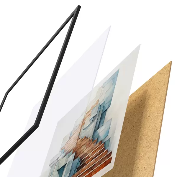 El póster consta de marco, plexiglás, imagen impresa y soporte de aglomerado. El póster puede colgarse inmediatamente en la pared gracias a los soportes de la parte posterior.