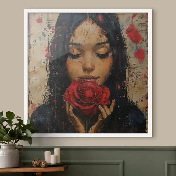Poster Chica con una rosa roja f40898
