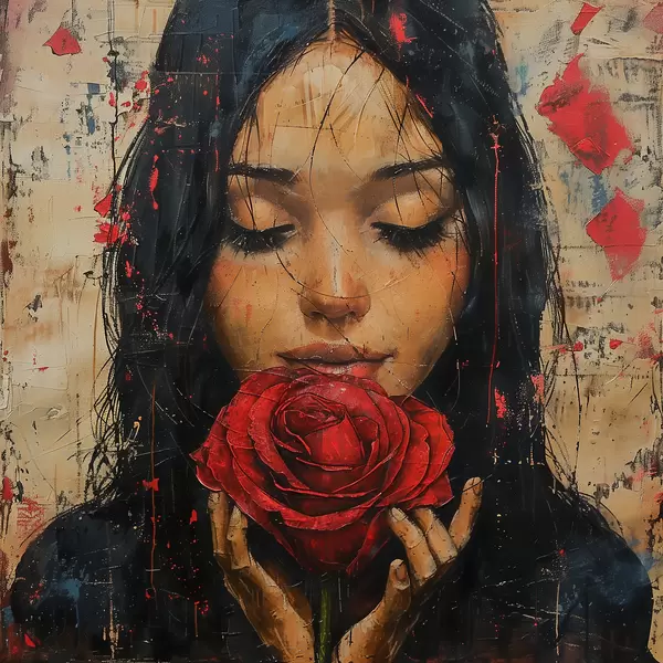 Poster Chica con una rosa roja Nr f40898