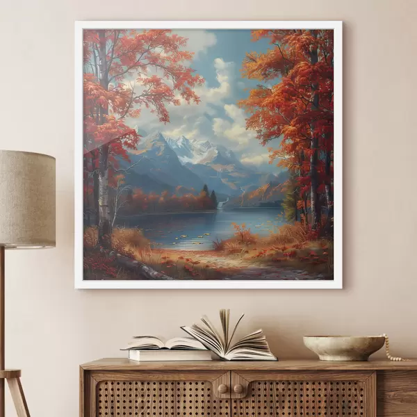 Poster Paisaje otoñal con montañas de fondo cerca de un estanque Nr f40903