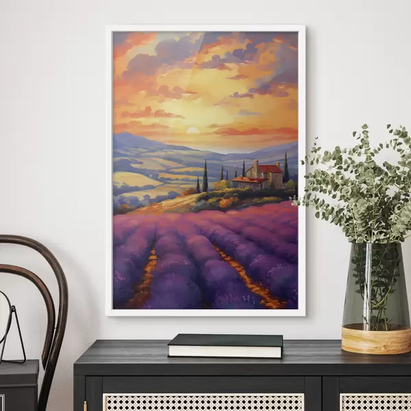 Poster Toscana puesta de sol, campos de lavanda, hermosos paisajes, acuarela Nr f40942
