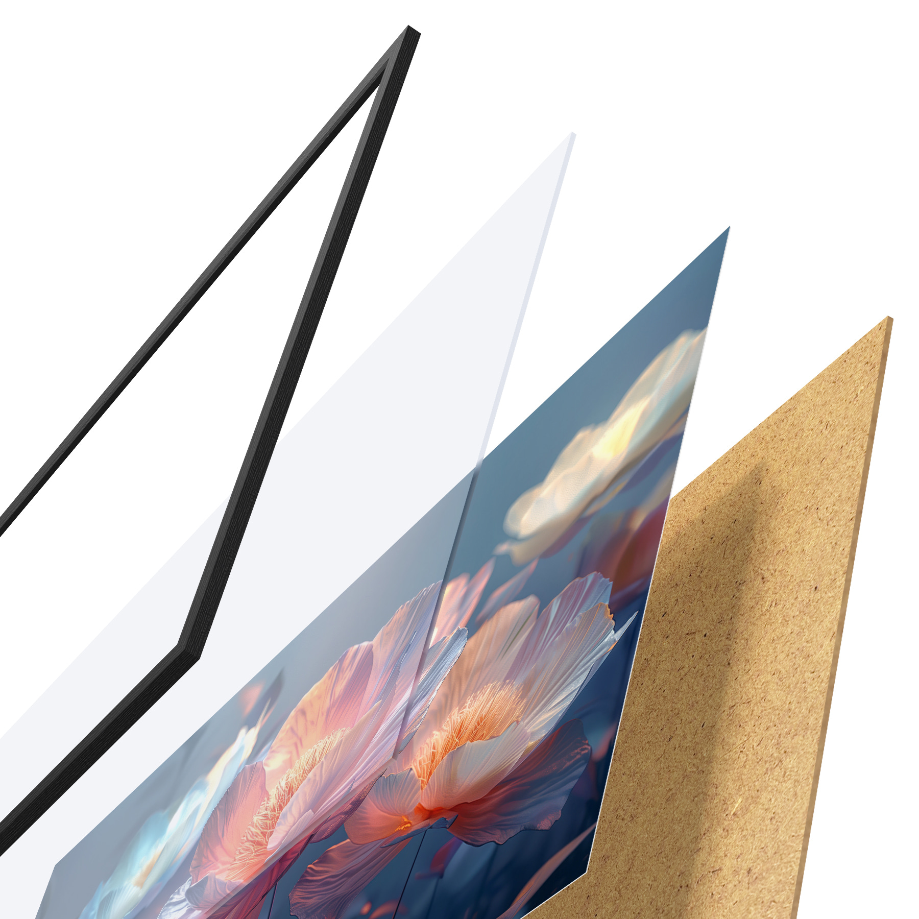 El póster consta de marco, plexiglás, imagen impresa y soporte de aglomerado. El póster puede colgarse inmediatamente en la pared gracias a los soportes de la parte posterior.