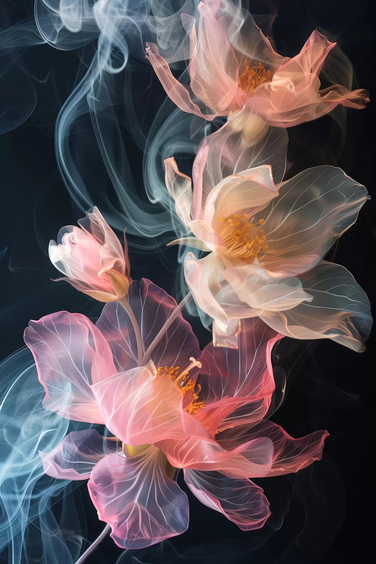 Poster Flores delicadas y aéreas rodeadas de humo f40967