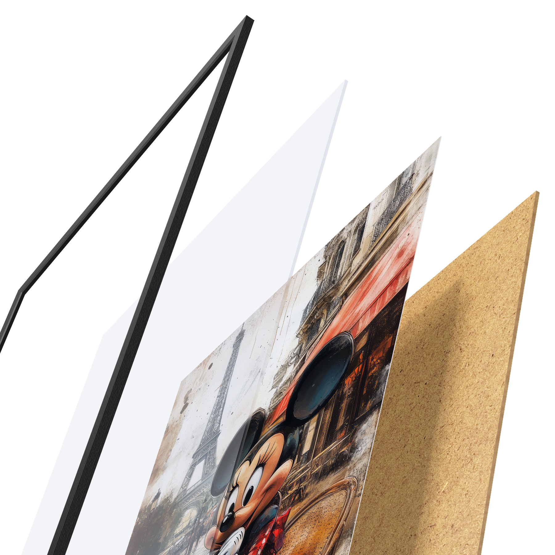 El póster consta de marco, plexiglás, imagen impresa y soporte de aglomerado. El póster puede colgarse inmediatamente en la pared gracias a los soportes de la parte posterior.
