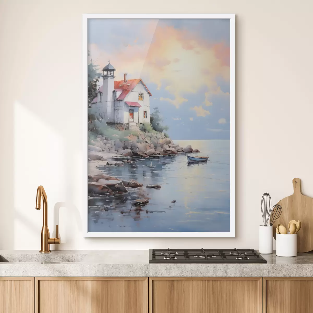 Poster Casa en la playa junto al mar al atardecer Nr f41010