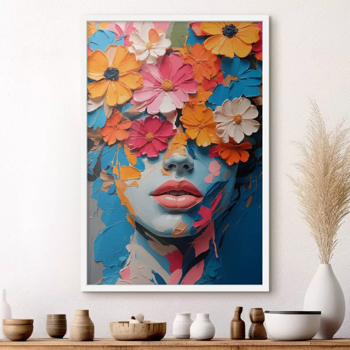 Poster Rostro de niña al óleo cubierto de flores Nr f41023