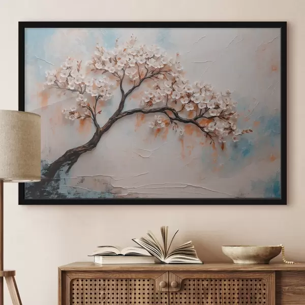 Poster Árbol en flor sobre fondo abstracto al óleo Nr f41032