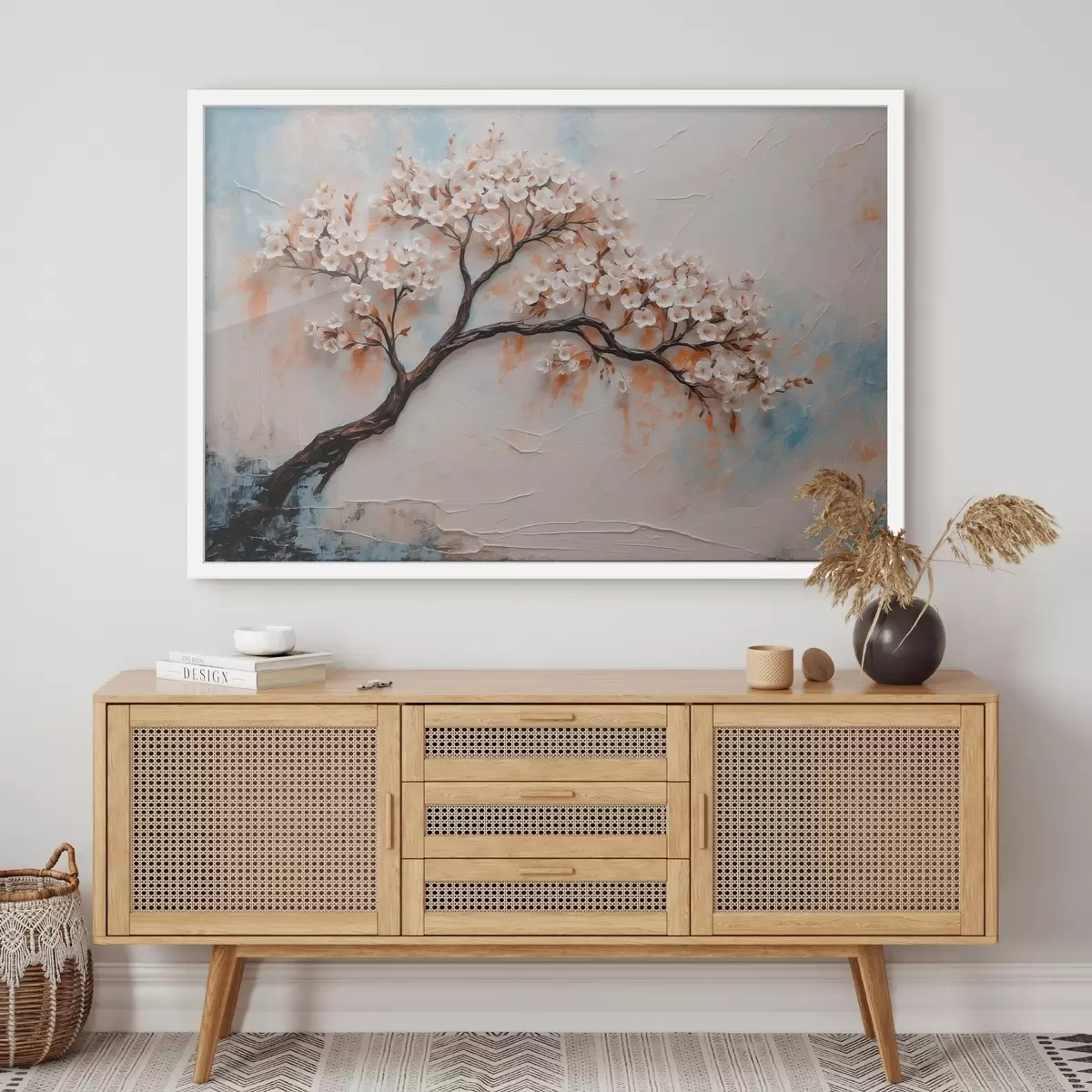 Poster Árbol en flor sobre fondo abstracto al óleo f41032