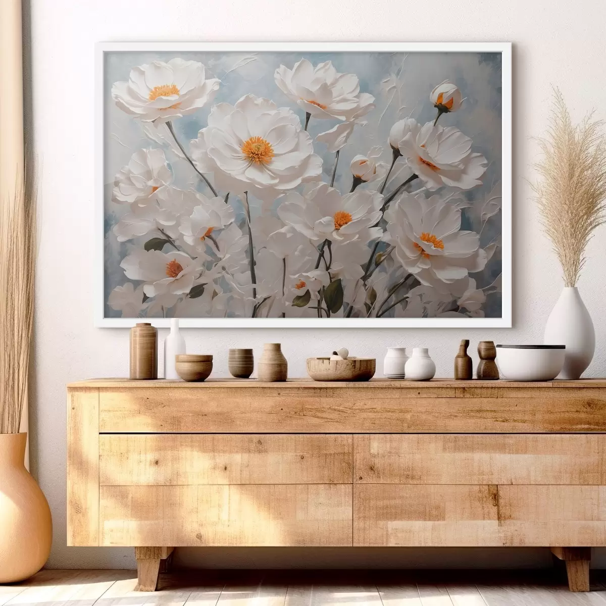 Poster Flores blancas sobre fondo azul-blanco al óleo f41041
