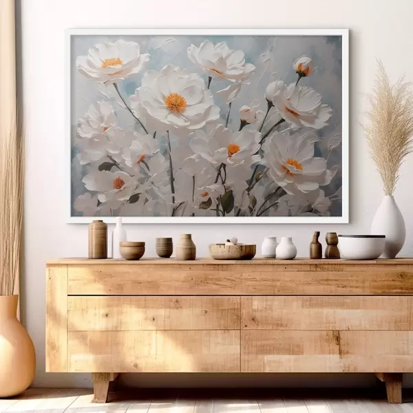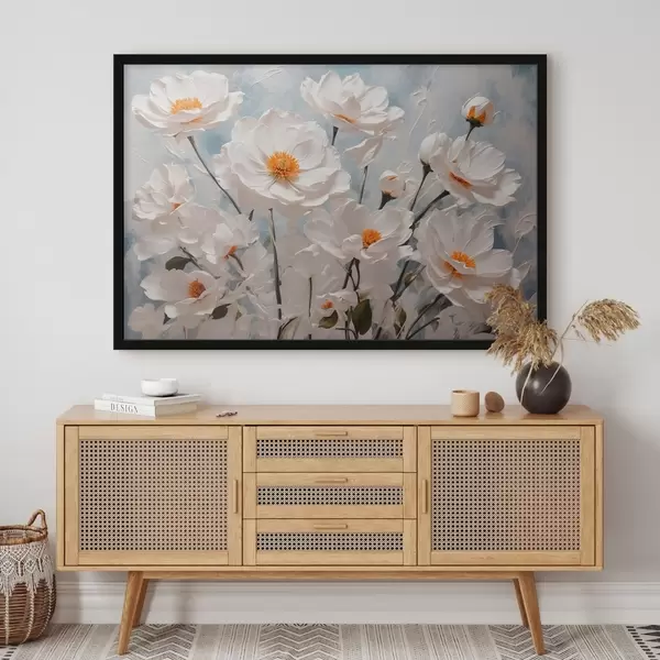 Poster Flores blancas sobre fondo azul-blanco al óleo Nr f41041