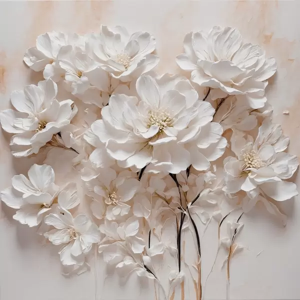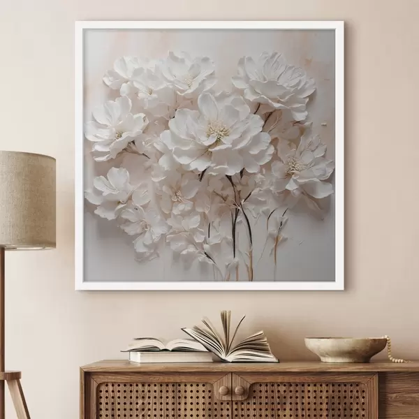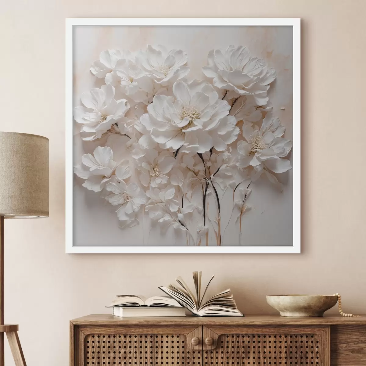 Poster Flores blancas sobre fondo blanco-naranja f41042