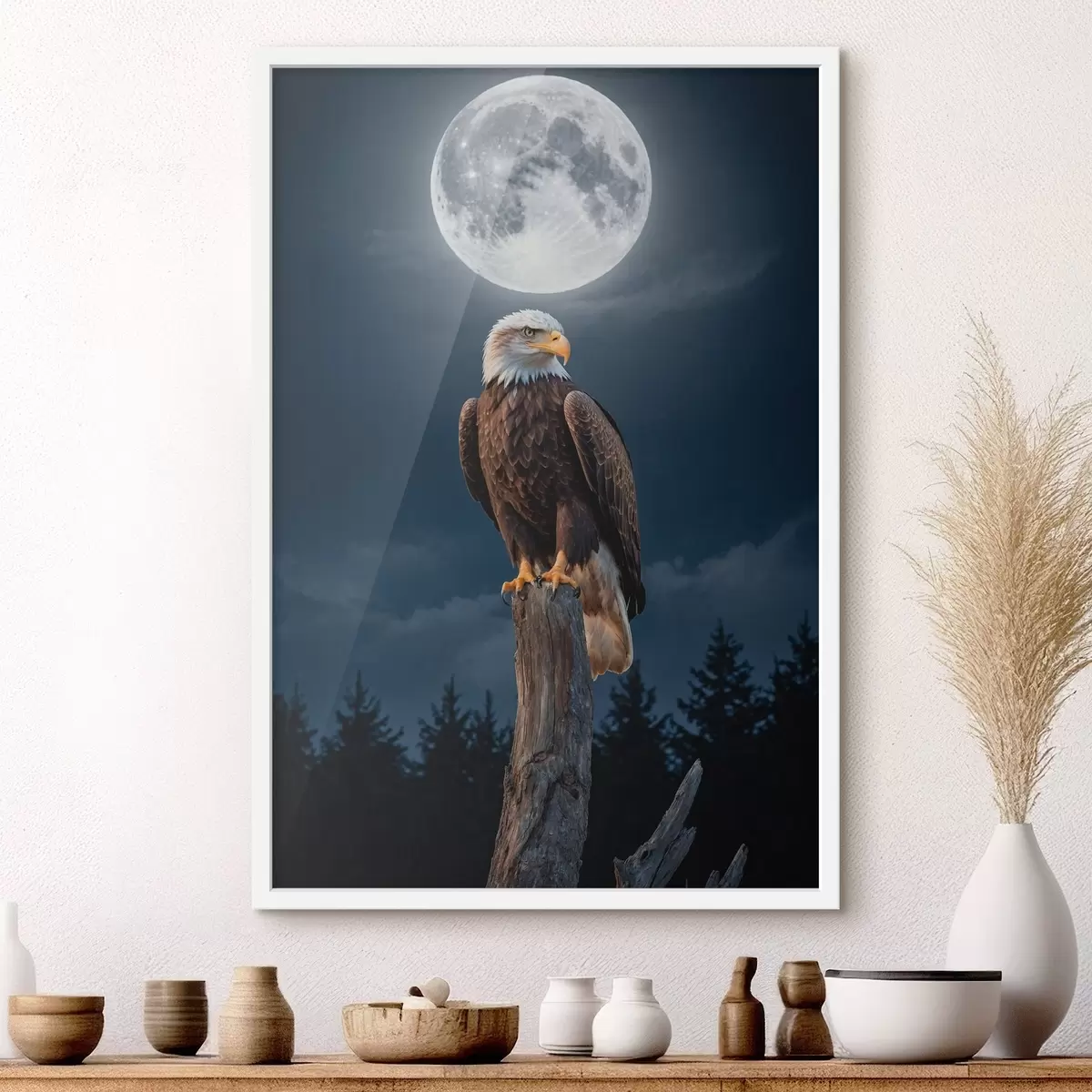 Poster Águila sobre fondo lunar Nr f41043