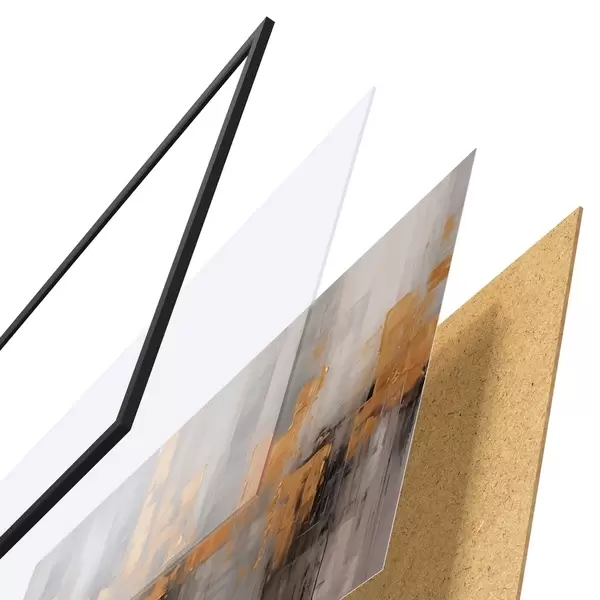 El póster consta de marco, plexiglás, imagen impresa y soporte de aglomerado. El póster puede colgarse inmediatamente en la pared gracias a los soportes de la parte posterior.