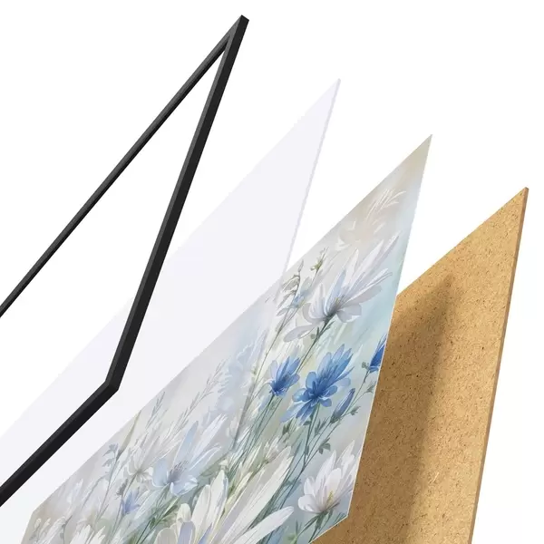 El póster consta de marco, plexiglás, imagen impresa y soporte de aglomerado. El póster puede colgarse inmediatamente en la pared gracias a los soportes de la parte posterior.