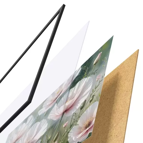El póster consta de marco, plexiglás, imagen impresa y soporte de aglomerado. El póster puede colgarse inmediatamente en la pared gracias a los soportes de la parte posterior.