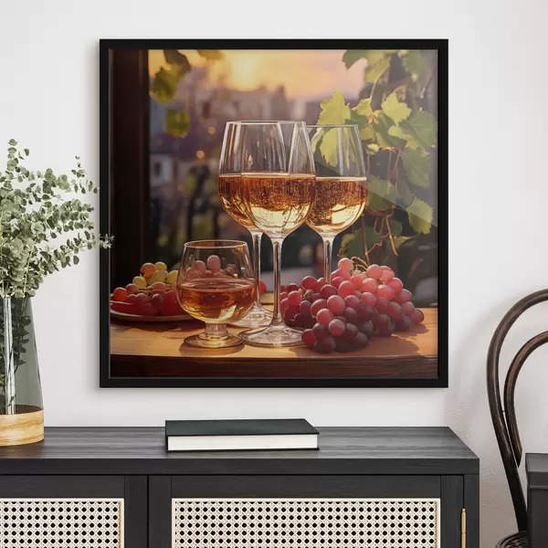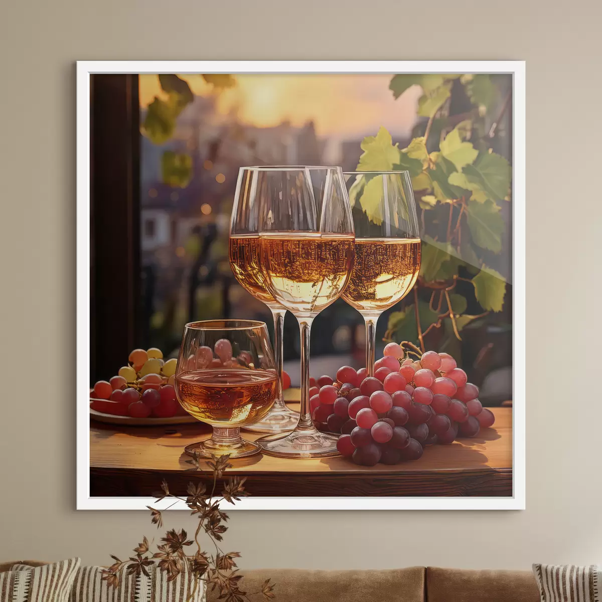 Poster copas con vino, uvas en la mesa, bodegón Nr f41104