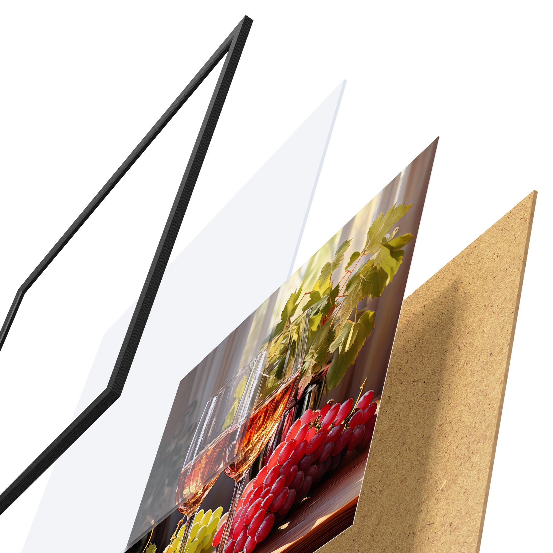 El póster consta de marco, plexiglás, imagen impresa y soporte de aglomerado. El póster puede colgarse inmediatamente en la pared gracias a los soportes de la parte posterior.