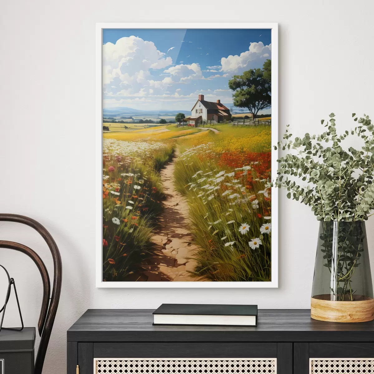 El póster consta de marco, plexiglás, imagen impresa y soporte de aglomerado. El póster puede colgarse inmediatamente en la pared gracias a los soportes de la parte posterior.