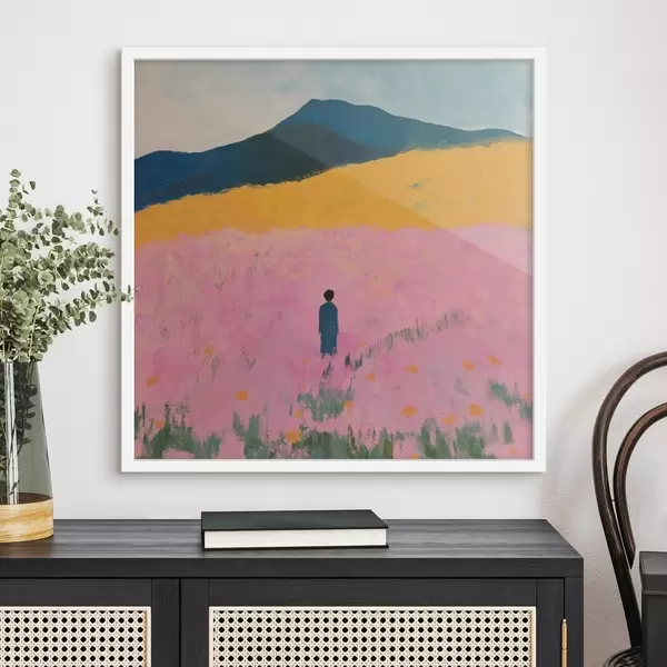 Poster Un hombre en un campo con flores rosas Nr f41164