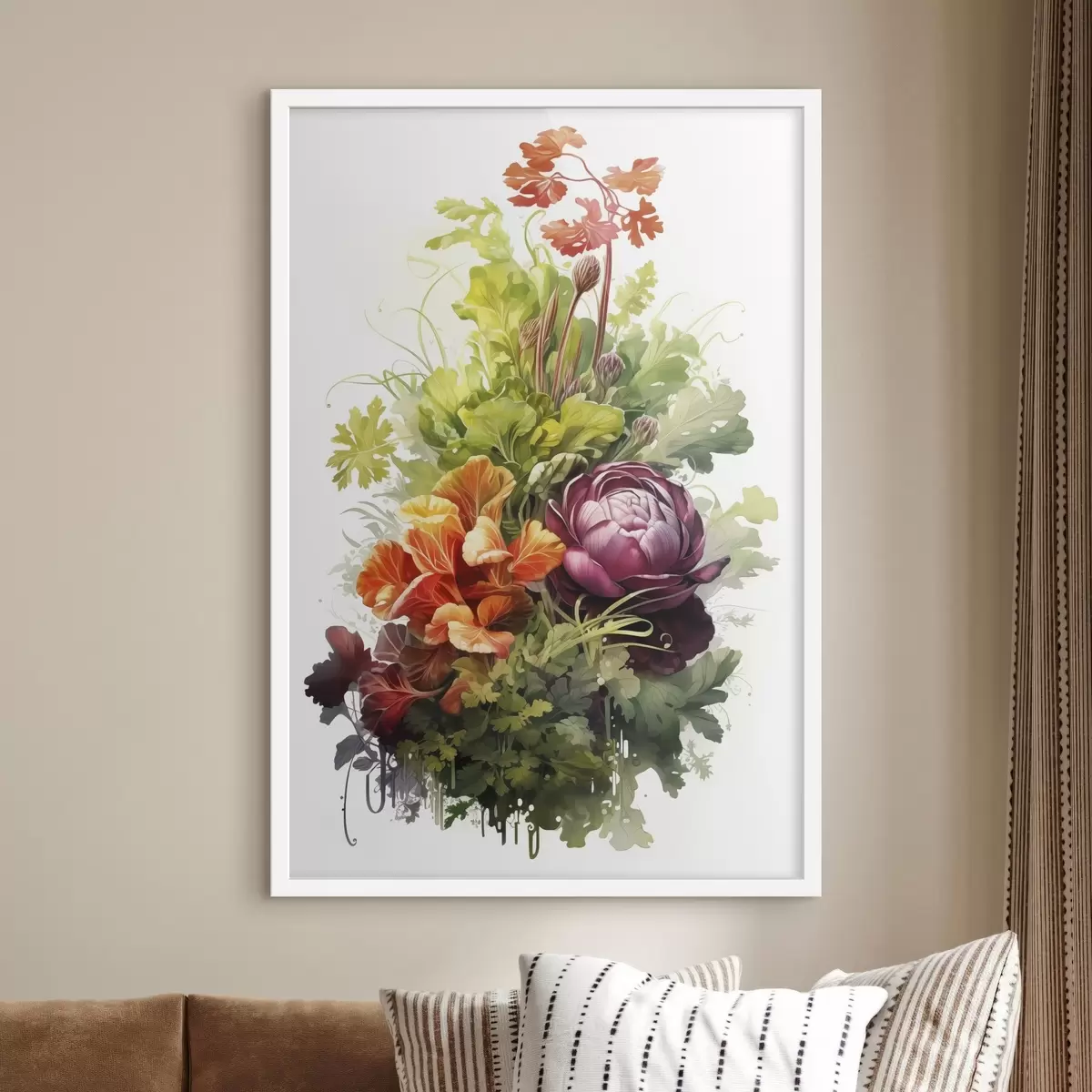 Poster Cosecha de verduras, acuarela, verdor, flores f41173