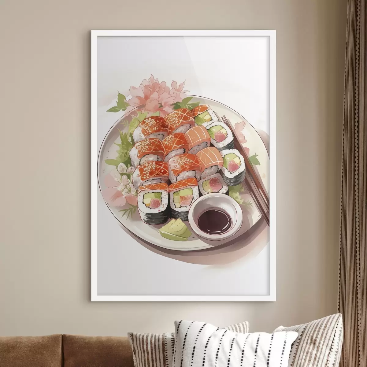 Poster Acuarela plato de sushi, salmón, delicioso Nr f41180