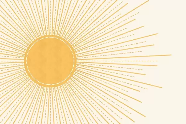 Poster Un sol amarillo brillante que irradia rayos de sol sobre un fondo claro, creando un ambiente cálido y soleado f41268