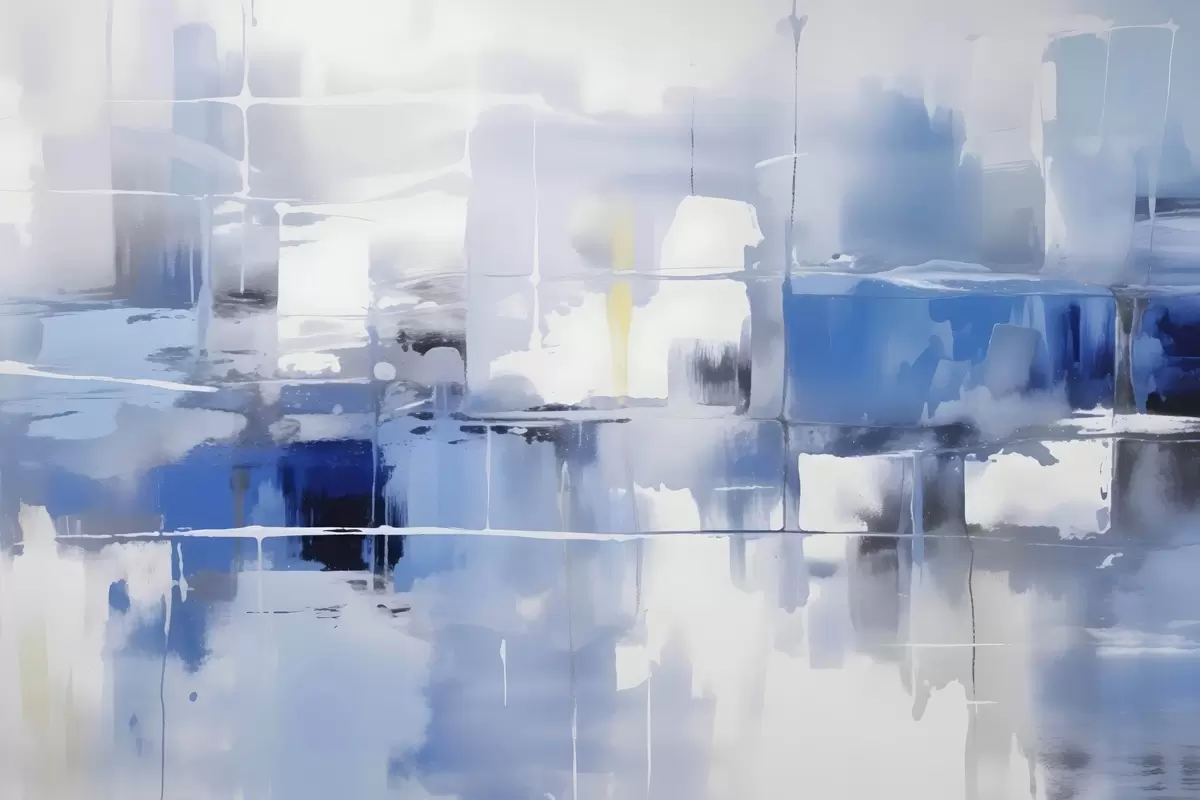 Poster Una abstracción moderna en tonos azules, blancos y grises con líneas y formas difuminadas Nr f41269