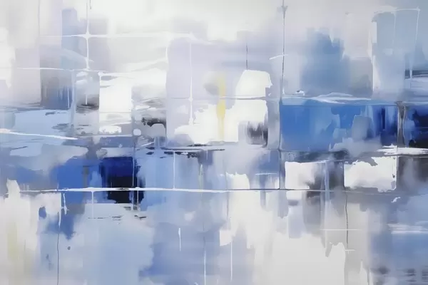 Poster Una abstracción moderna en tonos azules, blancos y grises con líneas y formas difuminadas f41269