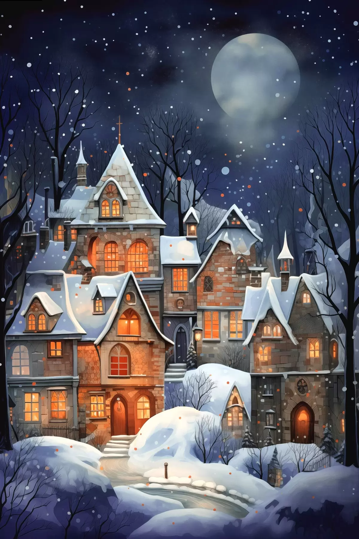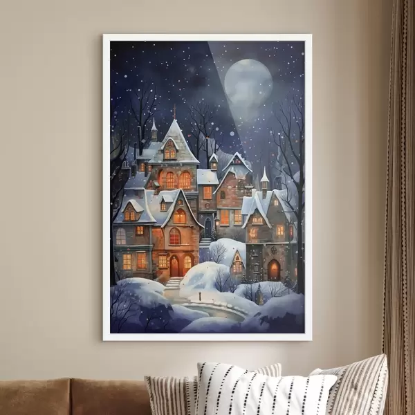 Poster Casas en la nieve con el cielo estrellado de fondo f41276