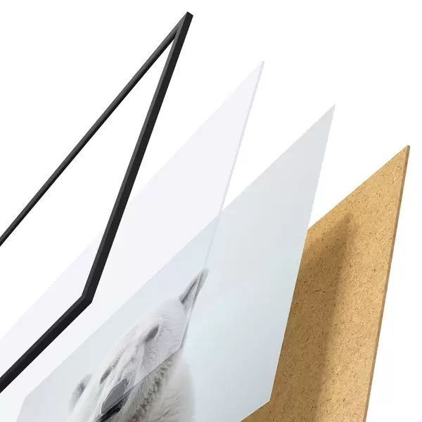 El póster consta de marco, plexiglás, imagen impresa y soporte de aglomerado. El póster puede colgarse inmediatamente en la pared gracias a los soportes de la parte posterior.