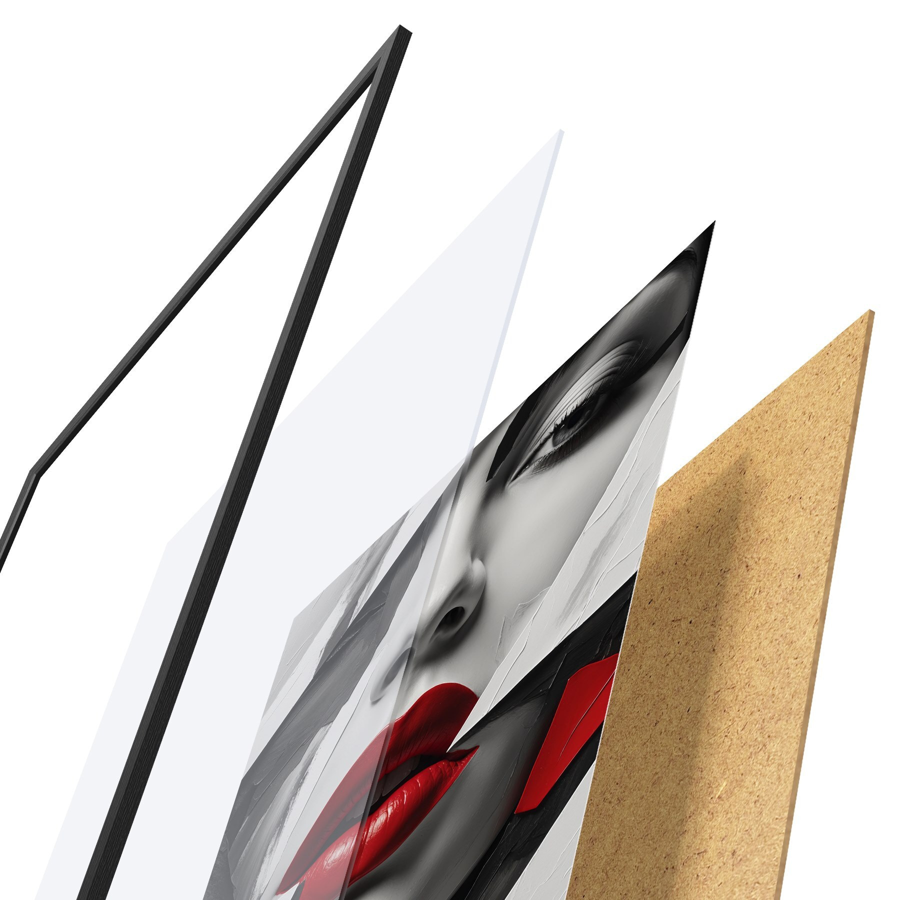 El póster consta de marco, plexiglás, imagen impresa y soporte de aglomerado. El póster puede colgarse inmediatamente en la pared gracias a los soportes de la parte posterior.
