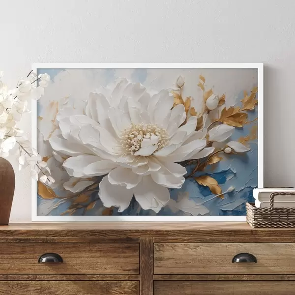 Poster Flor blanca sobre fondo blanco y azul Nr f41311