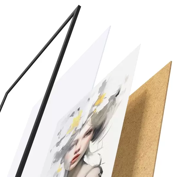 El póster consta de marco, plexiglás, imagen impresa y soporte de aglomerado. El póster puede colgarse inmediatamente en la pared gracias a los soportes de la parte posterior.