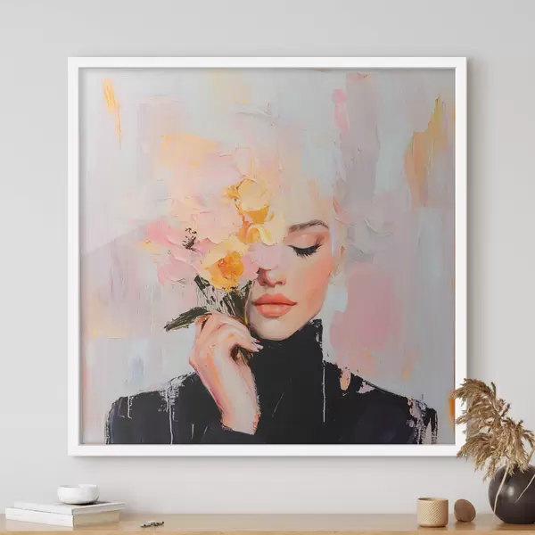 Poster Mujer abstracta con un ramo de flores en las manos con pinceladas Nr f41355