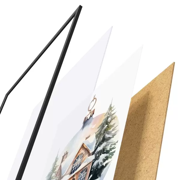 El póster consta de marco, plexiglás, imagen impresa y soporte de aglomerado. El póster puede colgarse inmediatamente en la pared gracias a los soportes de la parte posterior.